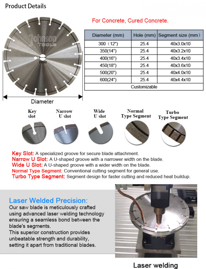 2. Specification information of 500mm Diamond Turbo Saw Blade for Cured Concrete with Good Efficiency